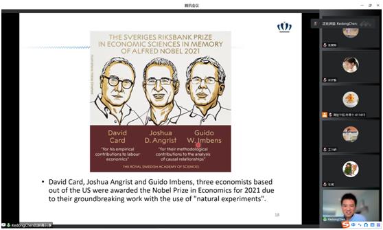 在讲到数据处理方法时,陈珂栋老师特别面向硕博研究生讲解了管理研究方法中常用的方法——双重差分法的原理和在本研究中的应用过程。还与同学们分享了自己的论文投稿经历,给同学学术研究、论文写作提出了建议。