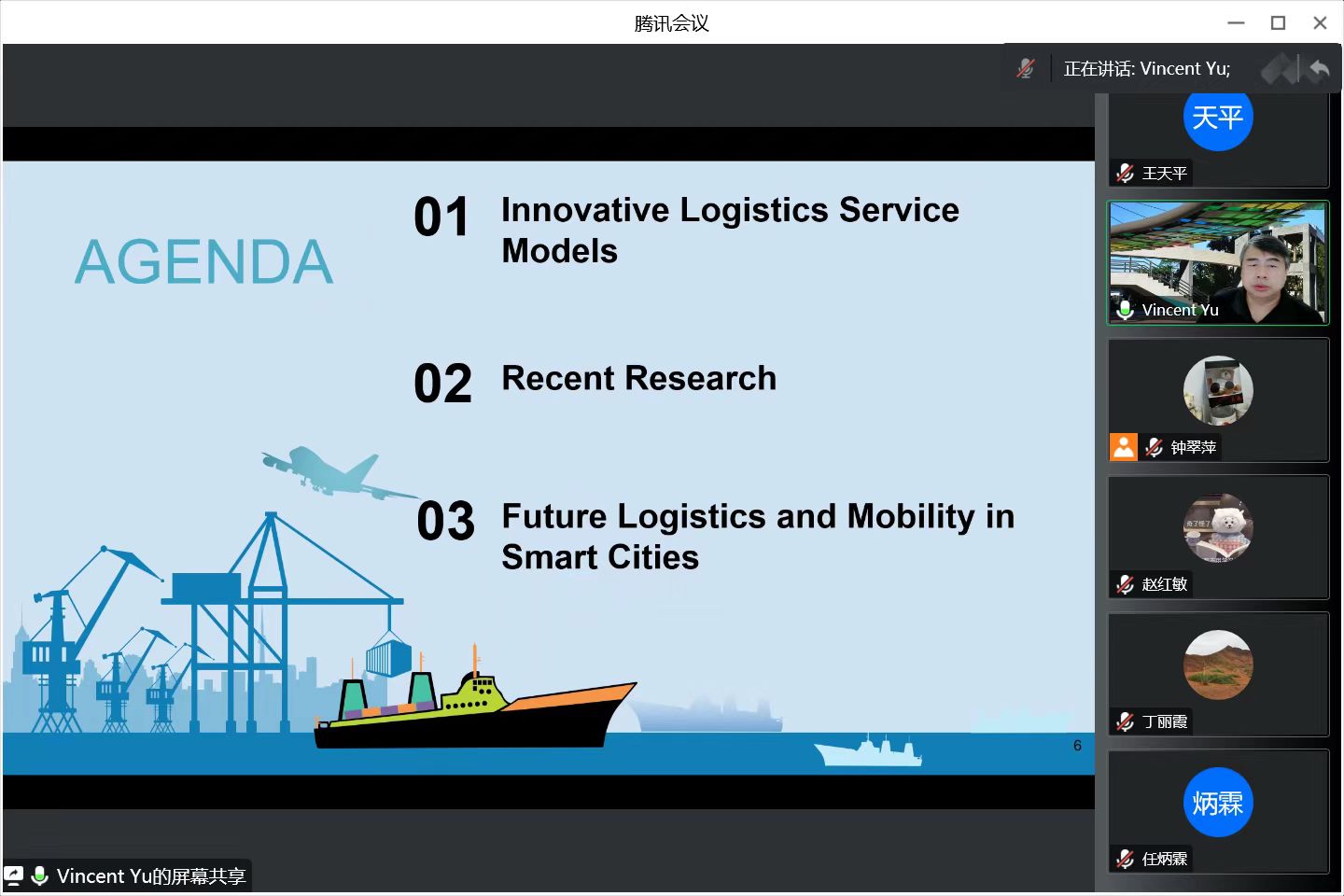 喻奉天教授毕业于美国密西根大学,多年深耕于作业研究、物流与供应链管理、柔性计算、智慧营运、数据分析、人工智慧以及能源系统优化等研究领域,已发表约100篇期刊论文和200篇研讨会论文。首先,喻教授介绍了智慧城市创新物流的研究背景以及他所带领的团队当前的研究内容。随后,喻教授从创新物流服务模式、前沿研究以及智慧城市的未来物流和交通三个部分鞭辟入里的为我们展开讲解了智慧城市创新物流的相关知识。针对当前已经出现的许多新型运输工具和最新物流模式配置,喻教授详细讲解了它们的运作方式以及各自的优缺点。而后喻教授向我们展示了他所带领的团队的近期研究并详细讲解了他们是如何针对当前新型问题挖掘课题方向,并将所挖掘的问题建立模型,开发出精确算法以及启发式算法求解。最后喻教授向我们介绍了如今各大物流公司和平台对于未来智慧城市物流运输发展的展望,并展示了众多公司对于未来物流工具和模式的构想。报告会最后,参会师生就此次报告内容与喻奉天教授进行了深入讨论和互动交流,针对师生提出的提问,喻奉天教授均一一细致解答。钟翠萍教授对喻教授此次报告分享表示感谢,同时希望喻教授在疫情结束后能够与师生在线下开展进一步深入的学术交流,为好色