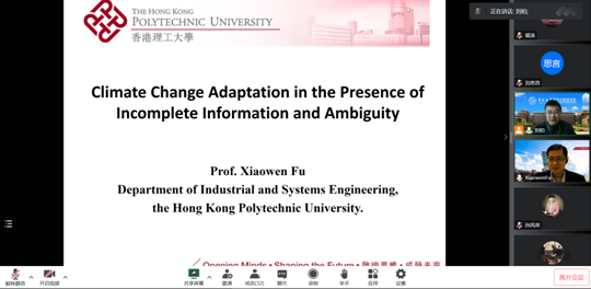 第六十二场讲座主讲嘉宾是香港理工大学符啸文教授,财务管理系刘柏教授主持了本次讲座,财务管理系师生等参与了本次学术交流。符教授讲座题目是:Climate Change Adaptation in the Presence of Incomplete Information and Ambiguity。