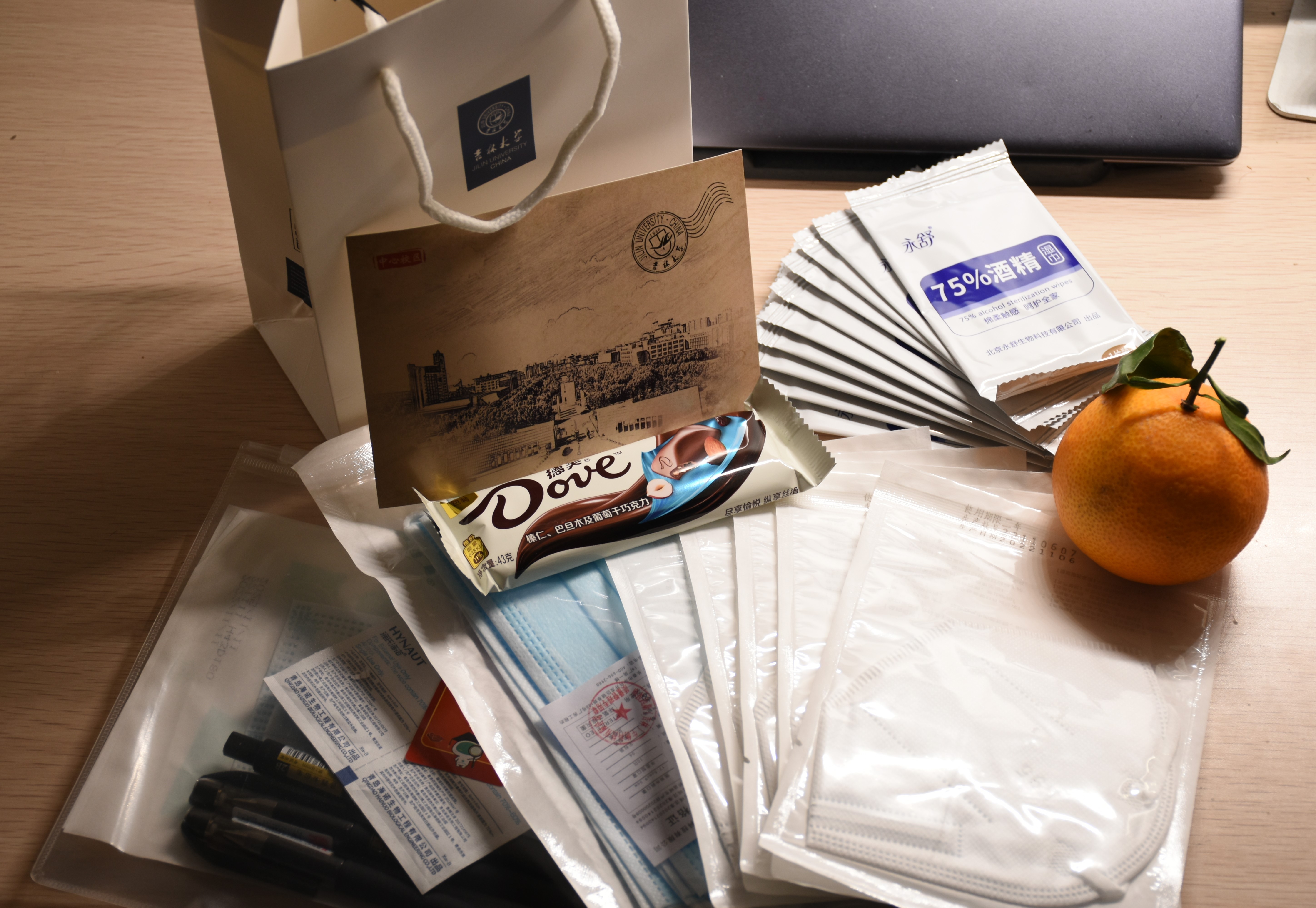 12月16日上午,毕业生辅导员陈卓、刘翔宇老师为同学们精心准备了“考研祝福加油袋”并亲手送到每一位学子手中。袋子里有寓意着“巧克难题”的巧克力,有代表着“心想事橙”的橙子,还有特殊时期的防疫包以及精美的文具。每一个加油袋中都附有老师们亲手所写的明信片寄语,寄托着老师对于全体考研学子的殷切嘱托与美好祝愿。收到“考研祝福加油袋”的同学们都表示十分开心,真切的感受到了学院的温情祝福,并表示将带着这份祝福奔赴考场。