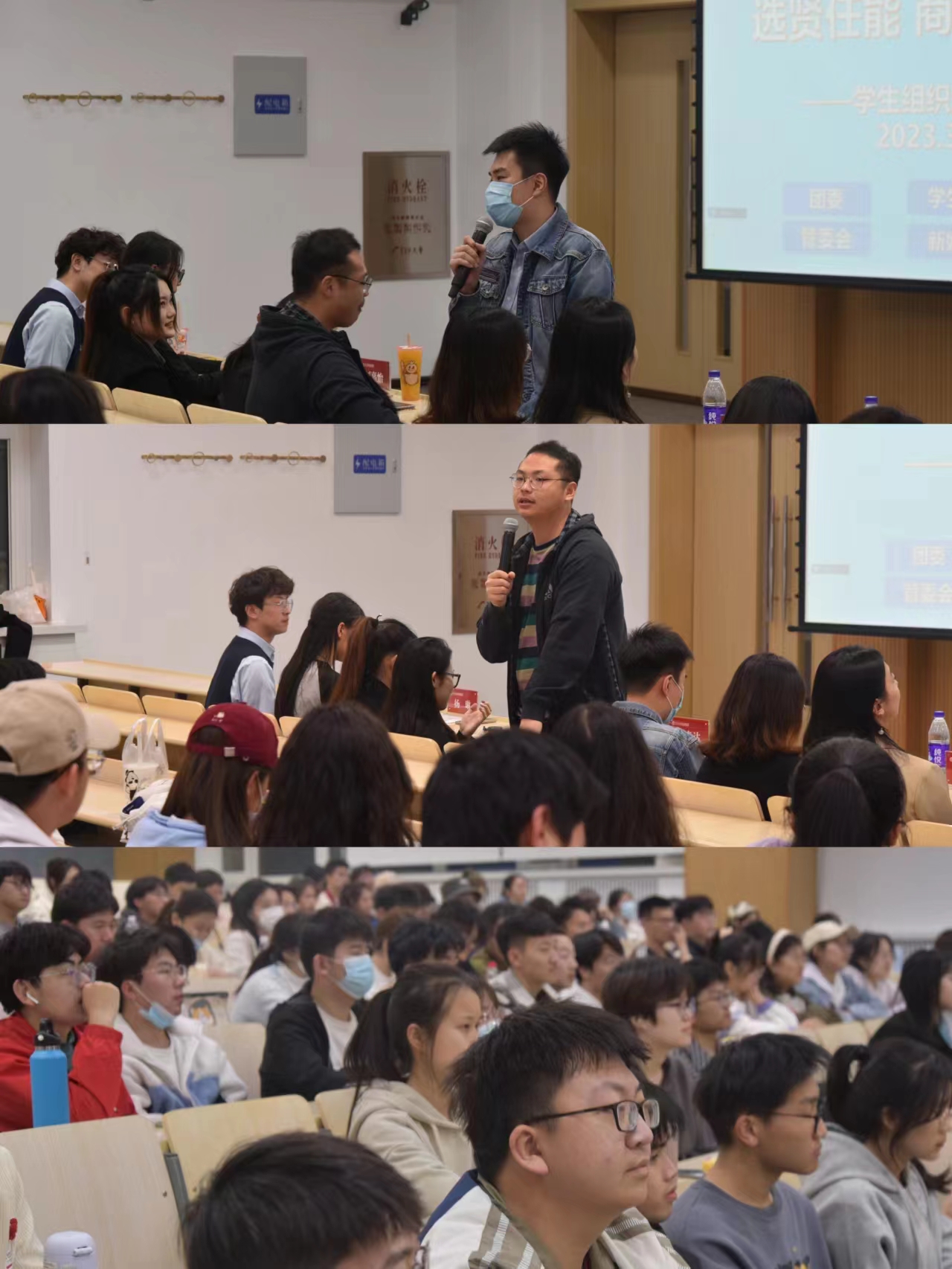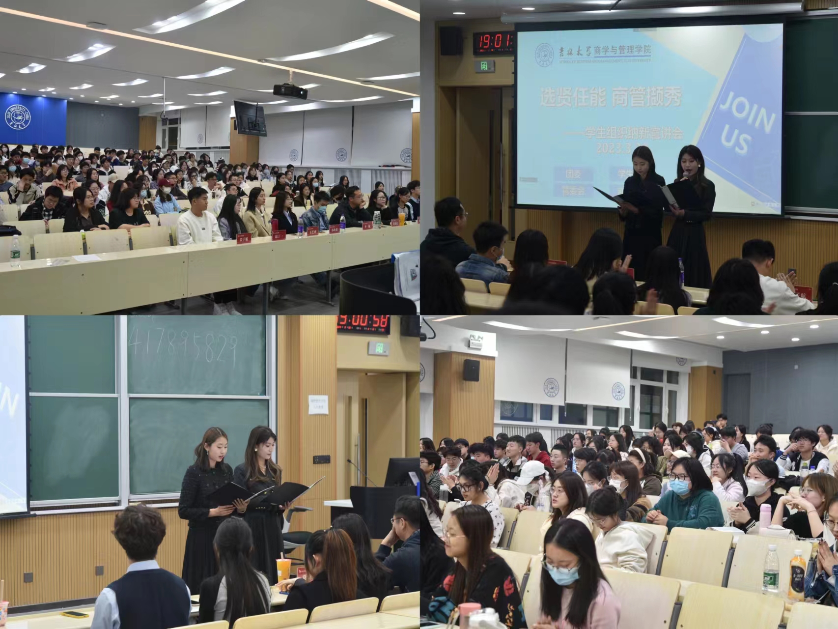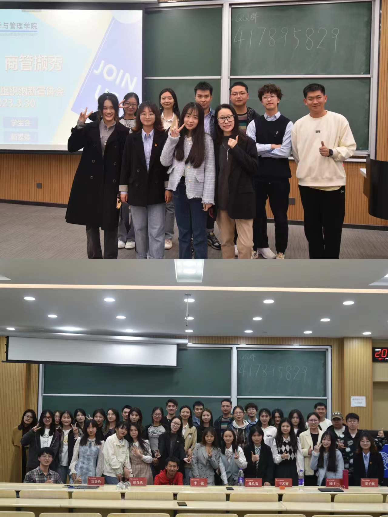 为确保学院团学组织健康有序发展,发挥组织育人功能,提高学生自我管理、自我服务能力,3月29日和3月30日晚7点,分别在逸夫楼第八阶梯教室和第十六阶梯教室举行了“选贤任能,商管撷秀——好色