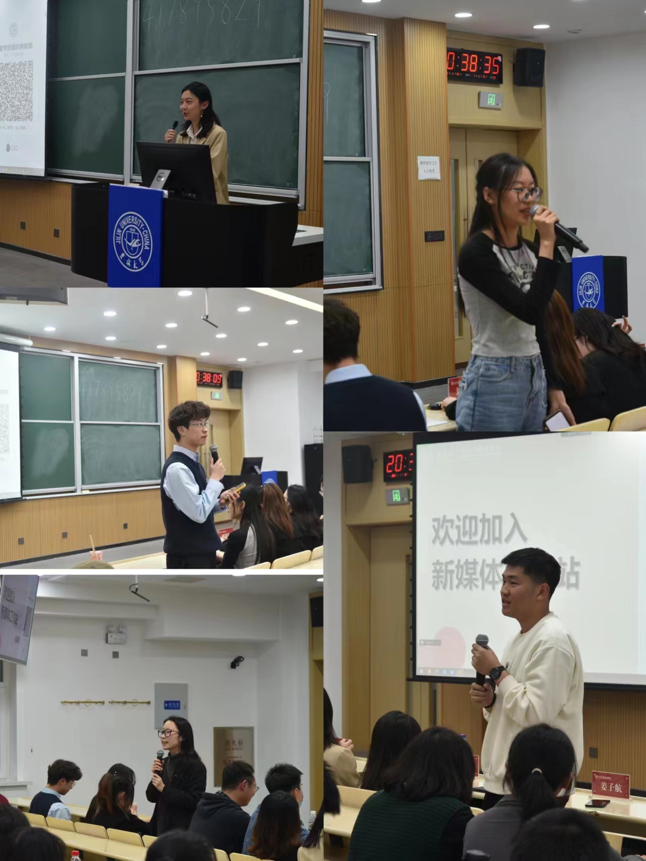 接下来各个组织部门的代表纷纷介绍了自己的组织架构、活动范围和招新要求,从先进青年群众性组织的团委到联系广大同学桥梁和纽带的学生会;从服务宿舍公寓学生生活的管委会到学生媒体运作的新媒体,介绍异彩纷呈。期间还穿插着活动表演,有歌舞、吉他、情景剧,赢得同学们阵阵掌声。
