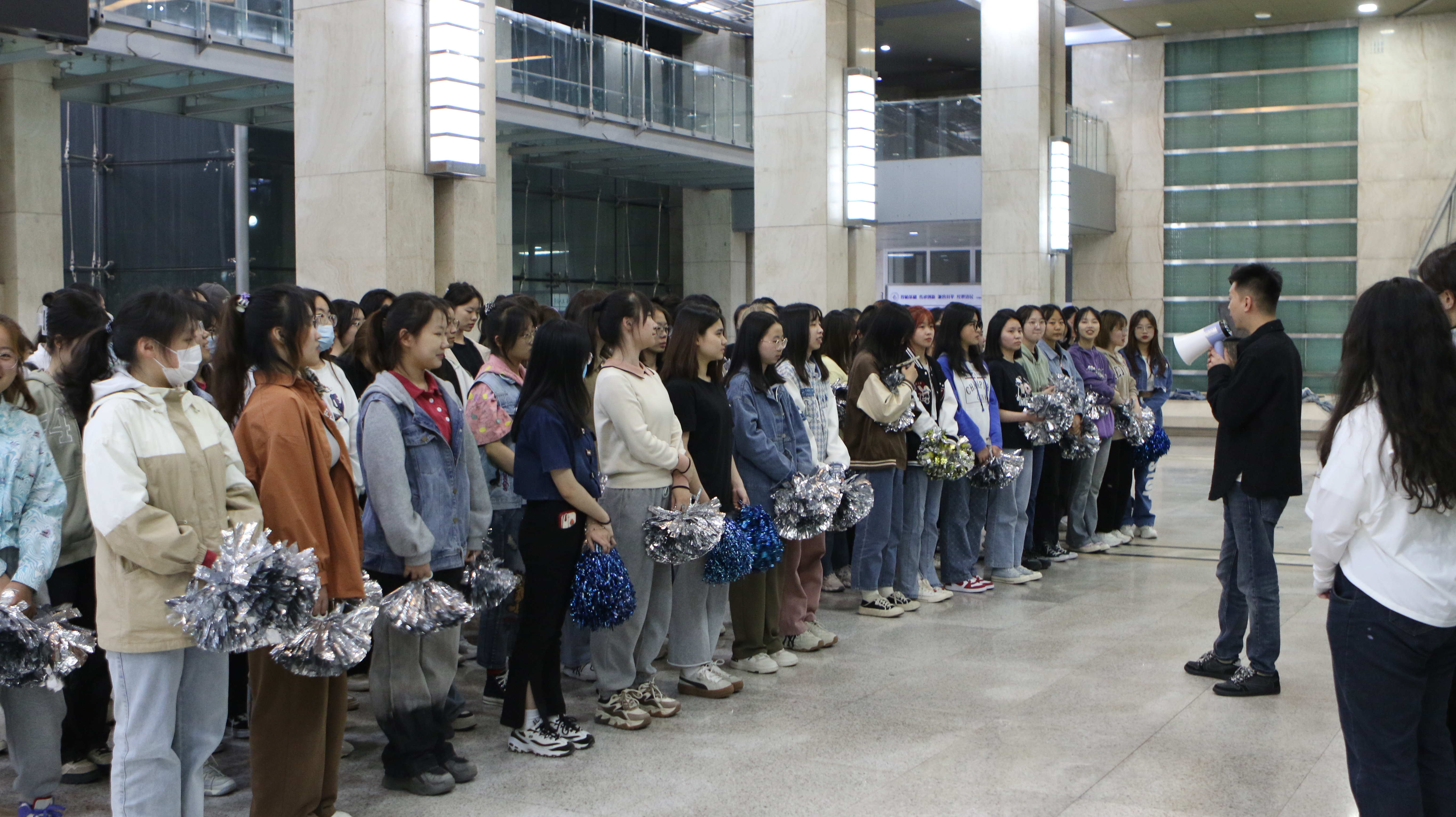 最后,老师们来到运动场,对现场排练的观众进行了动员。老师们强调,观众是非常重要的环节,开幕式当天,同学们一定展现出学院学子的风貌,近期大家一定积极配合观众席的训练,以更好地状态迎接运动会的到来。