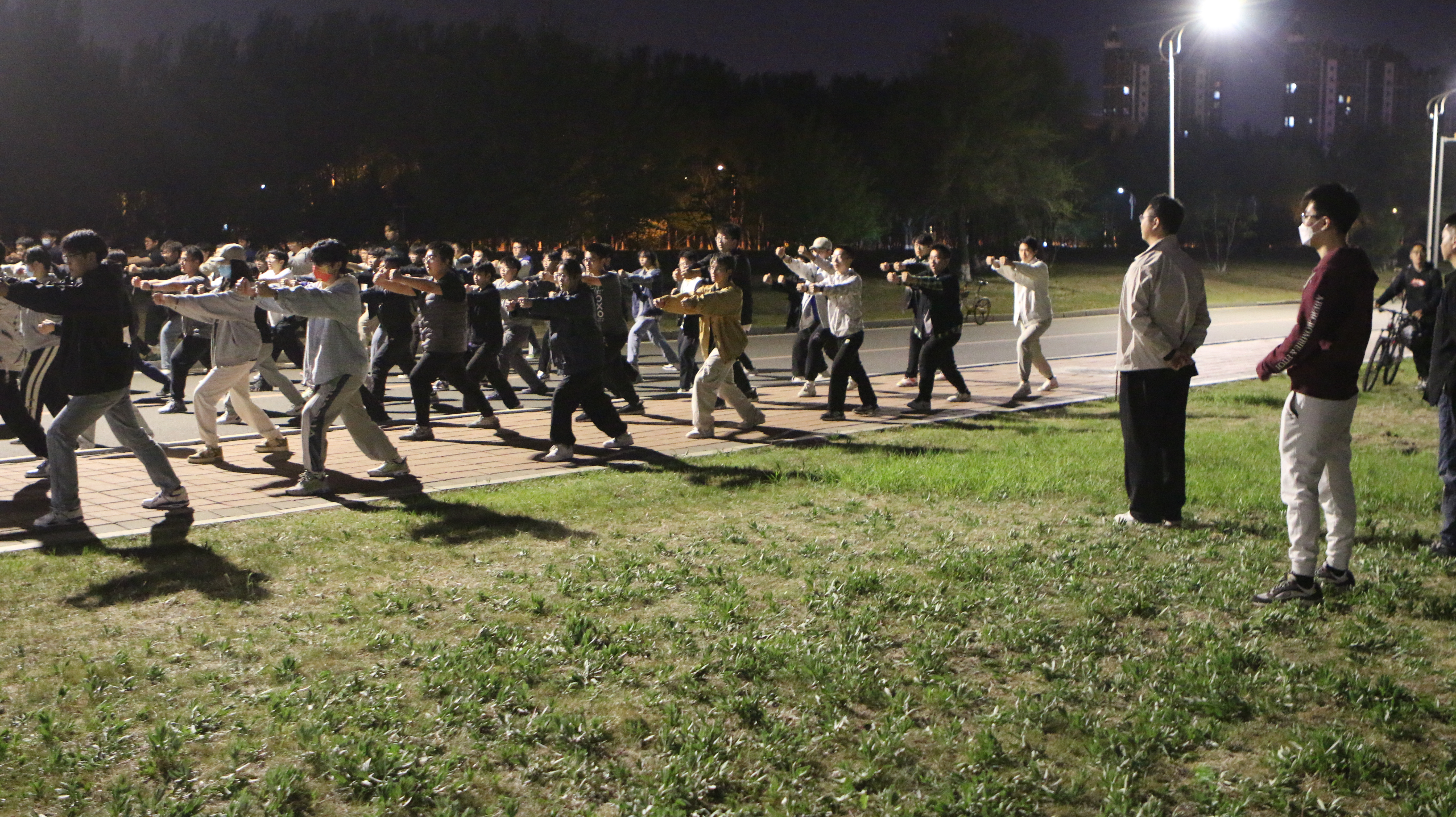 近期组织阳光体育各集体项目进行训练。5月11日晚,2021级本科生辅导员丁越、2020级本科生辅导员刘天目,2022级本科生辅导员李毓和贾奇达对太极拳、八极拳、啦啦操、方队等进行检查。参与训练的同学们精神饱满,积极训练,斗志昂扬。
