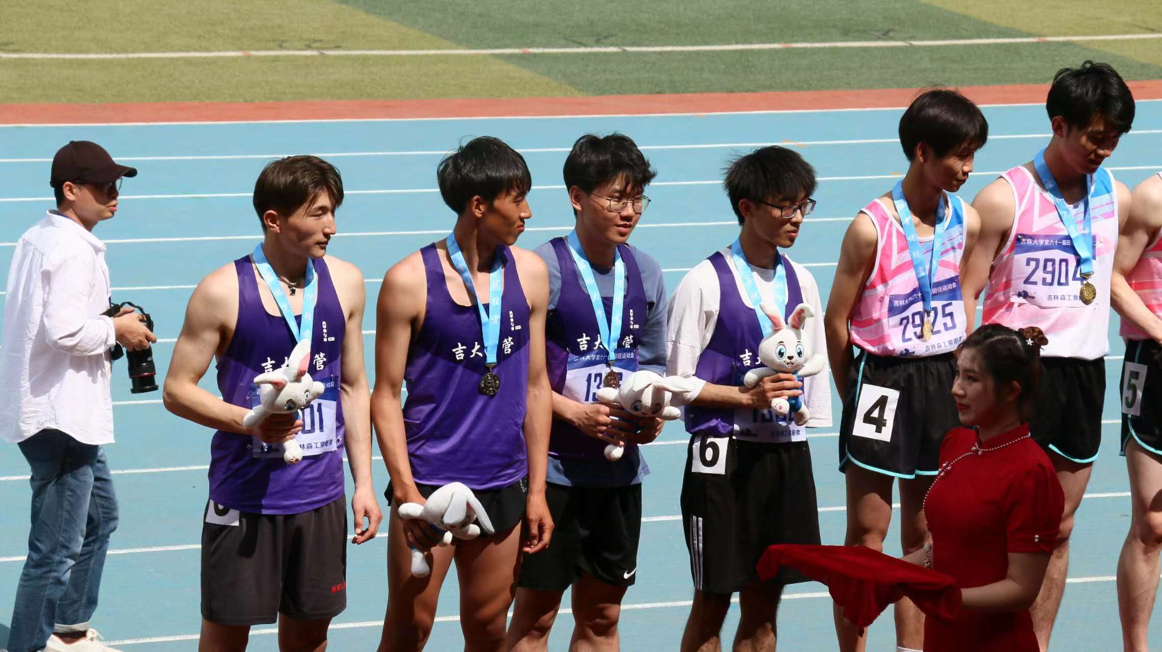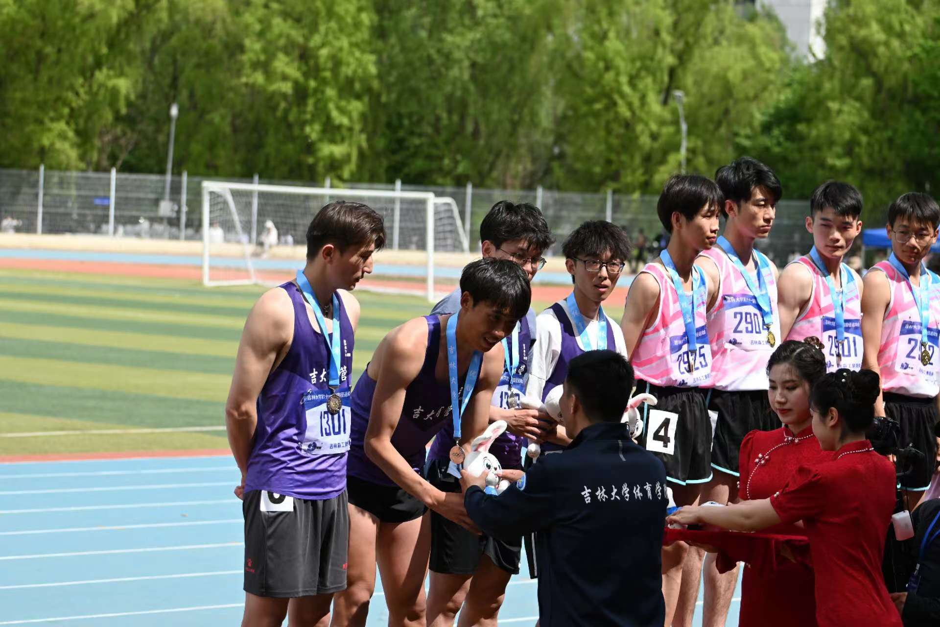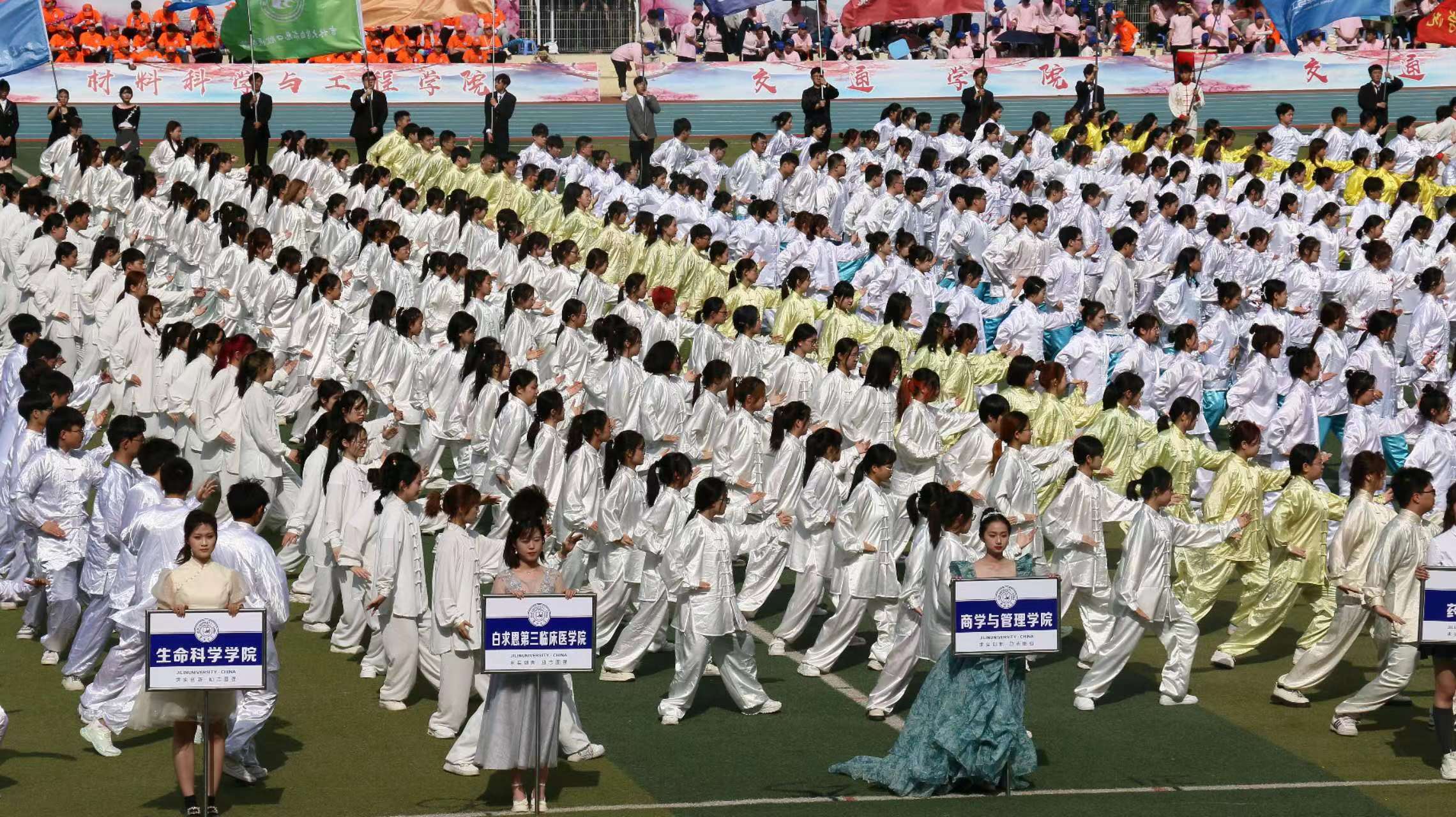 选手个个飒爽英姿、不负众望。在个体项目中,姜旭同学斩获男子跳远决赛和男子400米决赛第一名,李玟同学取得了女子篮球一分钟定点投篮决赛第四名,韩洋煜同学获得了女子1500米决赛第五名。团体项目中,商管学院夺得师生800米异程接力第一名,男子4×100米第二名,女子8×100米第二名,男子8×100米第三名,男子4×30秒单摇跳绳接力第三名,男子4×400米第三名,啦啦操、武术等比赛和表演也生动精彩、扣人心弦,均荣获了一等奖。
