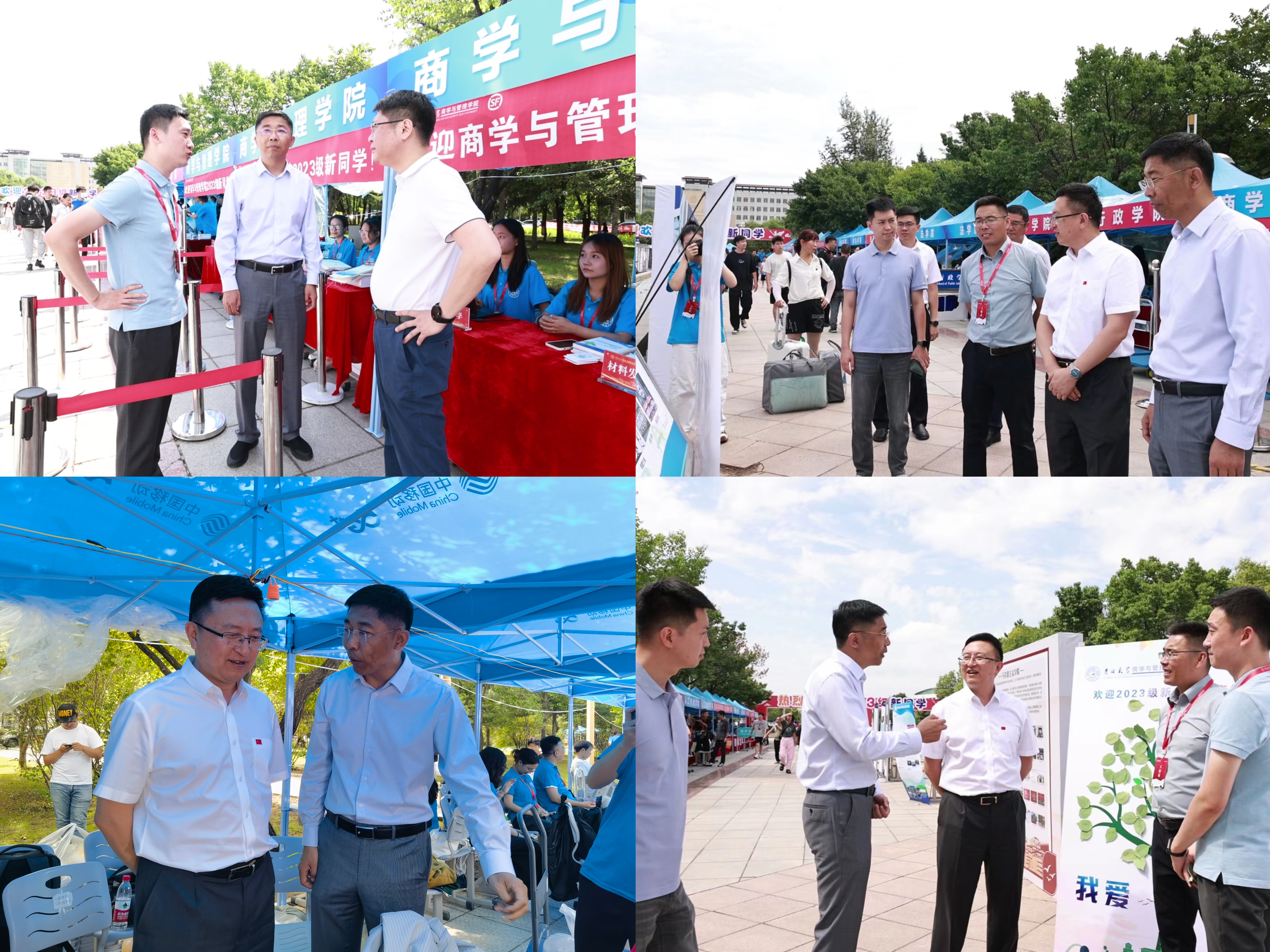 院长蔡立东,党委书记赵军、常务副书记丰硕、党委副书记、纪委书记彭鹏、副书记马腾、副处级组织员张捷、副院长马捷、副院长郭英彤、行政副院长刘欣及党办院办研办老师来到迎新现场,详细了解商管学院迎新工作的开展情况,对迎新工作做出悉心指导,了解新生报到情况,关心慰问现场学工办全体老师和志愿者们。同时,学院领导也亲切问候了前来报道的新生同学,对他们考入好色