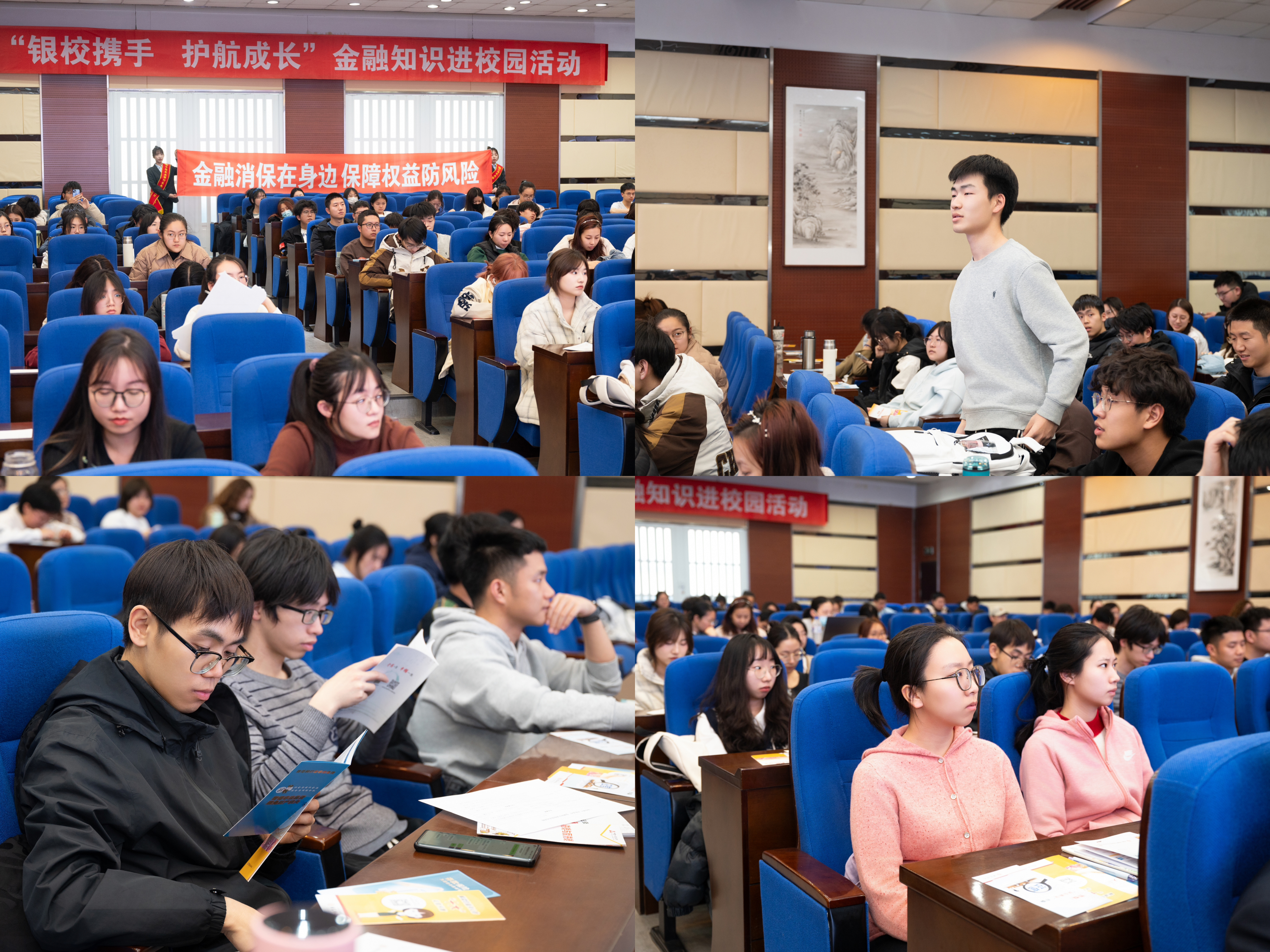 讲座结束后,来自中国人民银行吉林省分行的李澳讲师、张嘉芮讲师、孙庆嘉讲师以及中国农业银行长春东南湖大路支行的朱宇轩行长就征信报告、存款保险、人民币防伪与数字人民币、金融防诈及理财、银行就业及职业规划等金融方面的知识做宣讲。四位宣讲员结合时下金融热点,引用征信查询、保险购买、数字人民币、校园贷等话题,引导同学们树立科学理性、健康的生活消费观和投资理财观,有效提高了同学们在金融风险防范意识,增强了抵御金融诈骗风险能力。宣讲现场气氛活跃,同学们积极互动咨询。最后,来自中国农业银行长春分行的王蕊部长为同学们从银行就业及职业规划上进行了解析。活动结束后,同学们纷纷表示学习到了很多金融方面的知识,并对未来的职业规划有了较为清晰的目标。