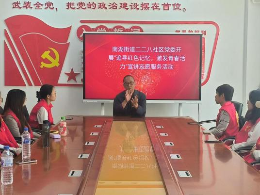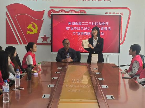 活动当天,学生们前往南湖街道二二八社区,首先由老党员同志们向青年学生讲述红色故事。老党员的亲身经历和生动讲述,让青年学生更加近距离感受到红色精神的力量,体会革命先辈的坚定信念和不屈不挠的斗志。这种面对面的自由交流,不仅深刻发挥了党员同志们的榜样作用,增强了学生们的历史责任感和使命感,也激励学生们继承和发扬光荣传统。
