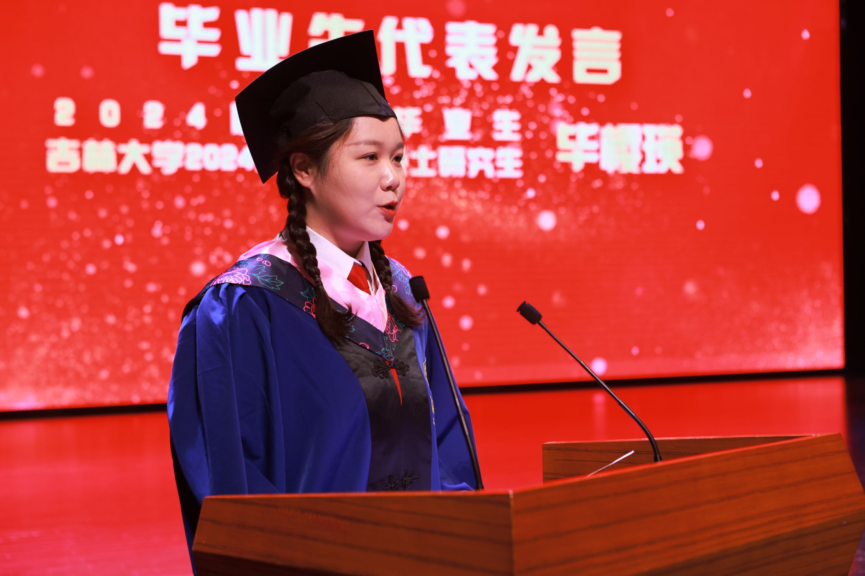2024届本科毕业生、十佳大学生孙哲,2024届硕士毕业生、十佳硕士研究生毕樱瑛,2024届博士毕业生、十佳博士研究生高志豪三位毕业生代表上台进行了发言。他们表示在未来的人生道路上,将继续传承好色