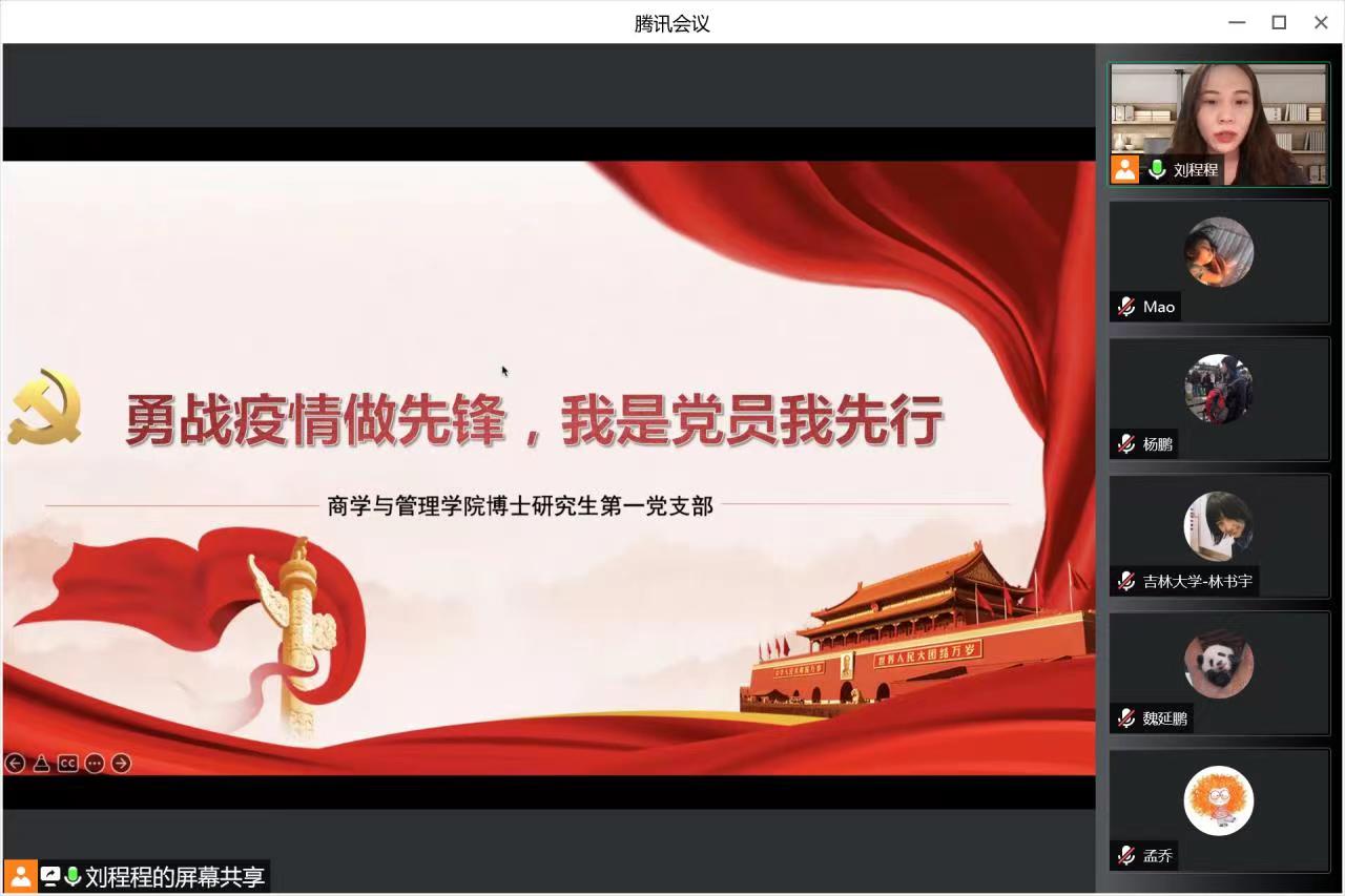 博士研究生第一党支部召开“勇战疫情做先锋,我是党员我先行”的主题党日活动,组织全体博士研究生第一党支部党员学习了习近平总书记重要讲话精神,鼓励党员同学们不畏艰难、勇担责任。本次活动由党支部书记刘程程同志主持,支部委员刘欣苗记录,支部全体党员参加。