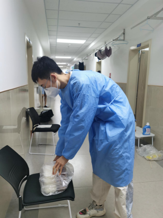 朱铭祺:“每天也都能看到身着防护服的其他志愿者在走廊里忙碌的身影,我相信在大家的共同携手下,吉人自有天相,期待春暖花开之日,静待全城解封之时!”