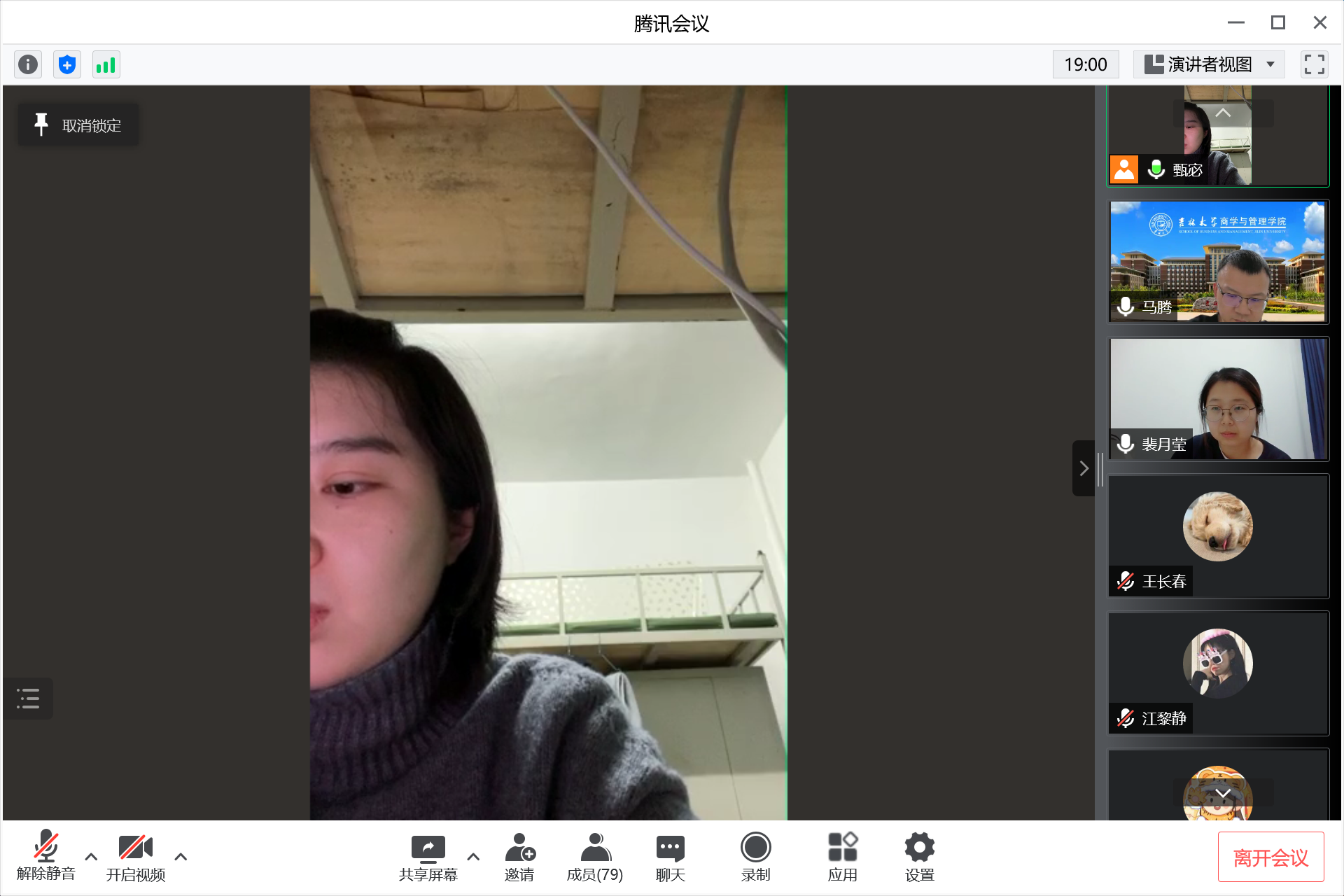 最后,马腾老师向全体学生干部自疫情以来的辛苦付出表示感谢,鼓励大家再接再厉,打好抗疫持久战。马腾老师提出,一是全体学生干部要坚定信心,相信学校、相信学院,把正能量带给身边同学;二是做好老师和同学之间的纽带,疫情期间的通知较多,一定要准确、及时的传达;三是要积极响应学校加强疫情期间宣传工作的通知,发挥好学生干部的主观能动性。最后,马腾老师鼓励大家,商管人要以实际行动共抗疫情,众志成城、同舟共济!