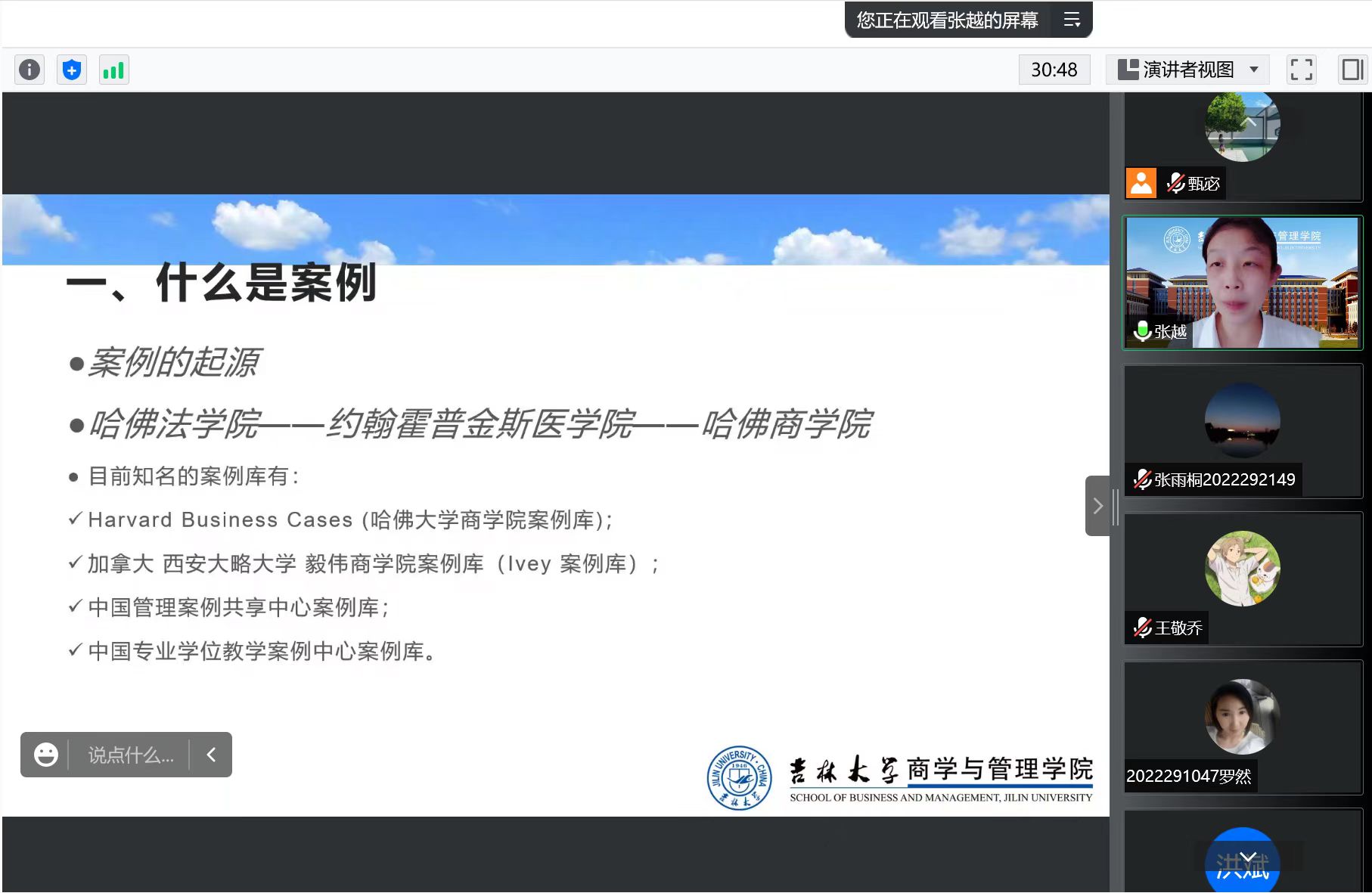 通过本次张越老师的讲座分享,同学们对案例及案例开发有了进一步的了解,并纷纷表示将在研究生生涯中努力钻研案例,积极参与案例精英赛。讲座最后,张越老师借此送给大家一句话来表达案例开发的魅力所在,“研究生何思何虑,天下同归而殊途,一致而百虑,唯案例至趣也”。