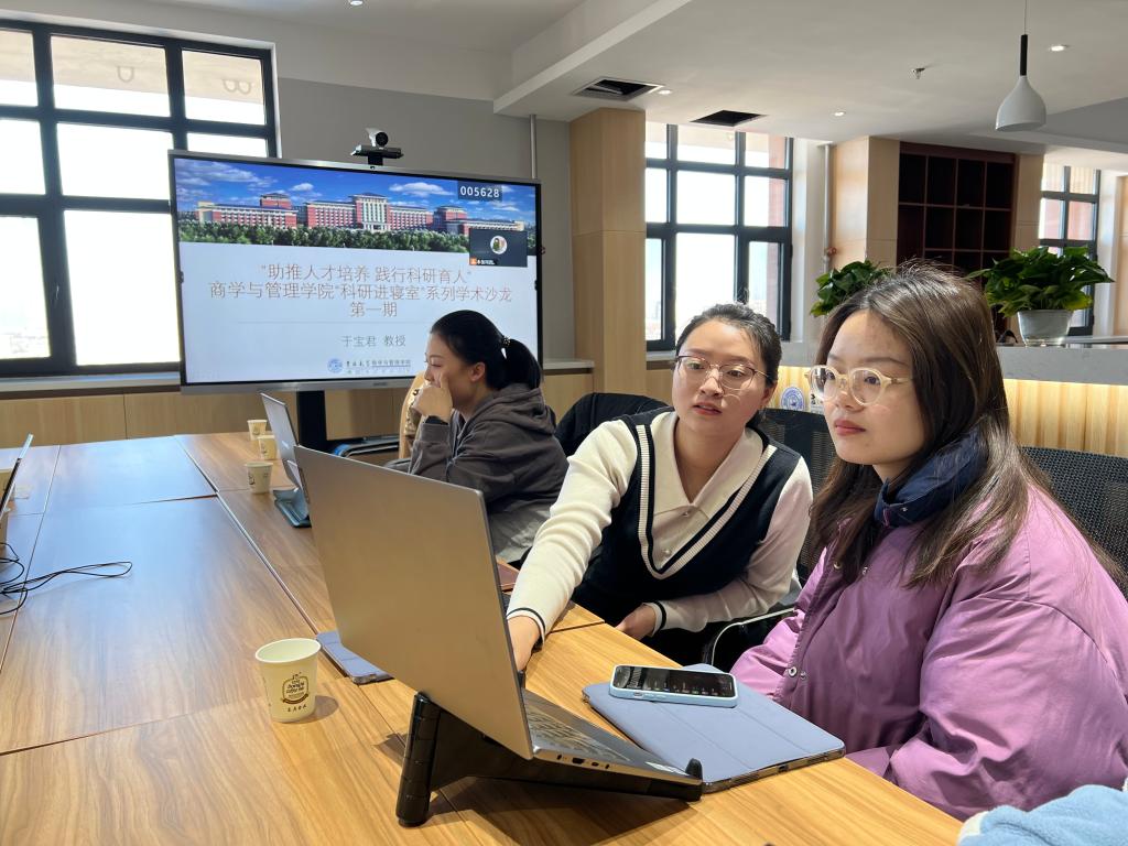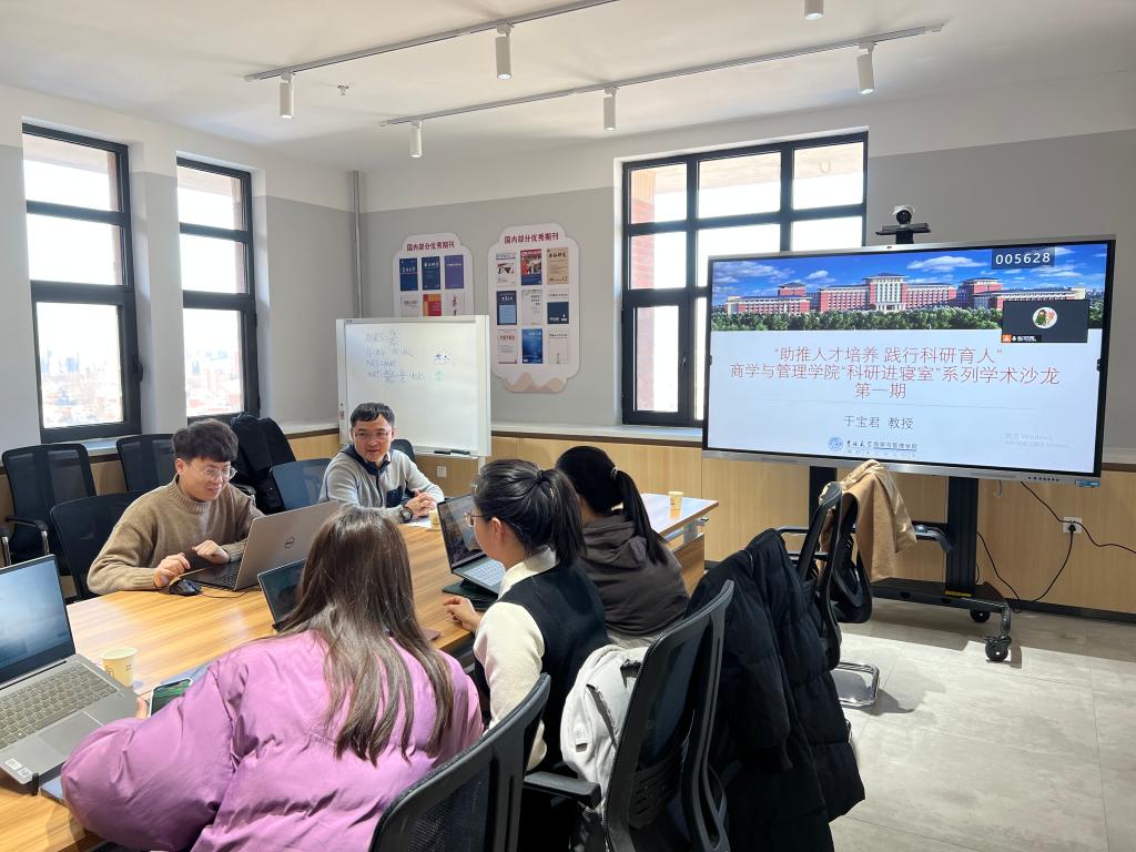 管理科学与工程系于宝君教授及多位研究生同学来到北苑四公寓Future学术沙龙活动室开展了以“数字化转型”为主题的学术研讨交流活动,研究生辅导员甄宓老师一同参加。