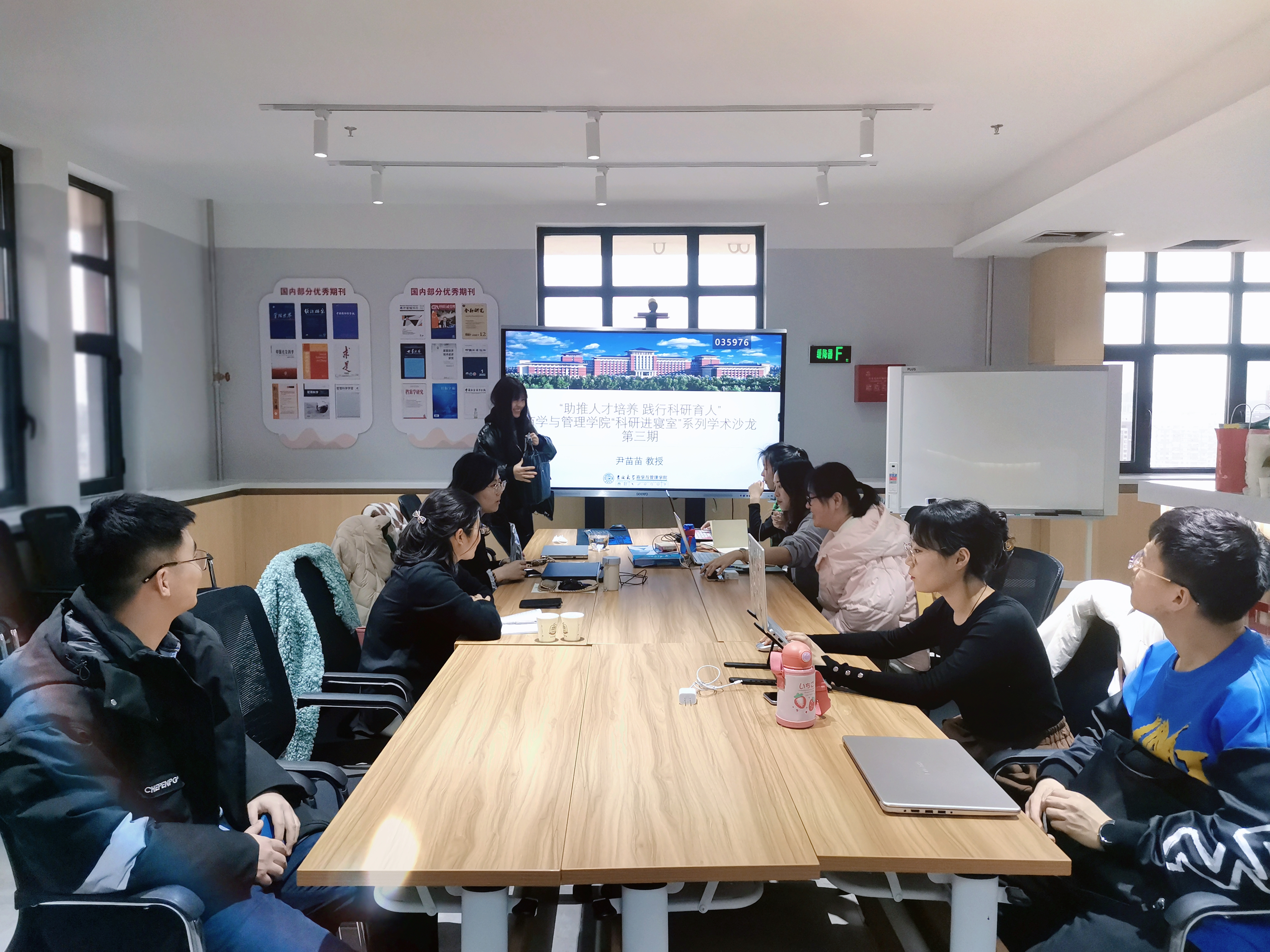前卫南校北苑学生4公寓11楼学术沙龙共享空间开展了第三期“助推人才培养,践行科研育人”活动。尹苗苗教授围绕“以思政为基石,以科研助成长”议题与好色