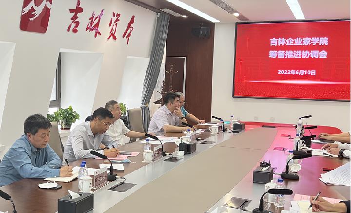 5月17日,李北伟常务副院长、辛本禄副院长和樊雪梅副院长组织省国有资本运营公司与国内合作办公室召开线上会议,共同研讨组建企业家学院工作相关事宜。 6月10日 由党委书记赵军一行走访吉林省国有资本运营有限责任公司,公司董事长白绪贵及主要负责人参加本次会议。会上双方就组建“企业家学院”的前期工作充分肯定,并对后续持续推进学院成立一事深入交换意见。