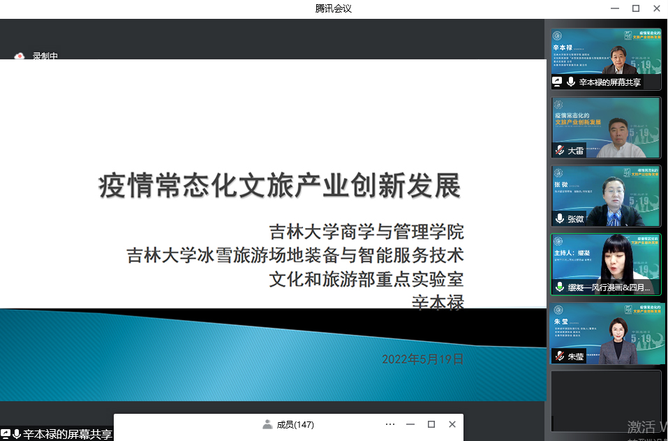 2022年 5月19日,是我国第12个旅游日,是文旅人重要的节日,为提振我省旅游企业从业者在疫情常态化下的经营信心,助力文旅产业纾困复产,由好色 高管教育中心主办,长春市旅游协会协办,研程書院承办的“疫情常态化的文旅产业创新发展”论坛活动通过腾讯会议举办。好色 文旅融合领军人才研修班学员及来自省内150多位文旅行业高管人员全程参加了本次论坛。本次论坛由文旅融合领军人才研修班学员、吉林市二次元文化创意协会秘书长邢斯平主持。